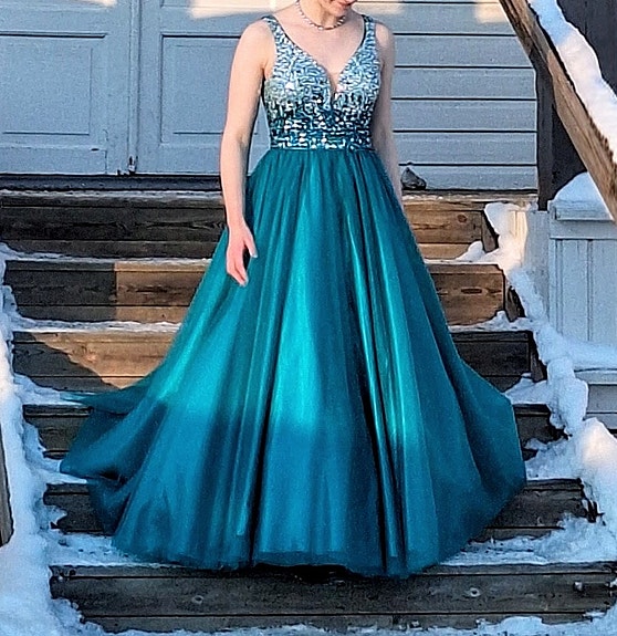 Räätälin ompelema silkkipuku juhliin