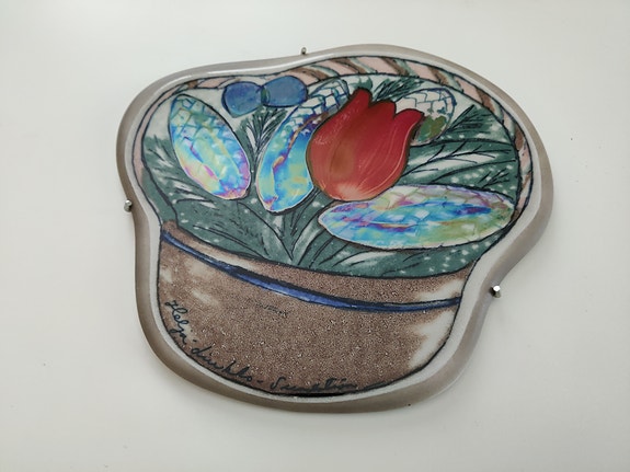 Arabia seinälautanen "tulppaanikori", design Heljä Liukko-Sundström
