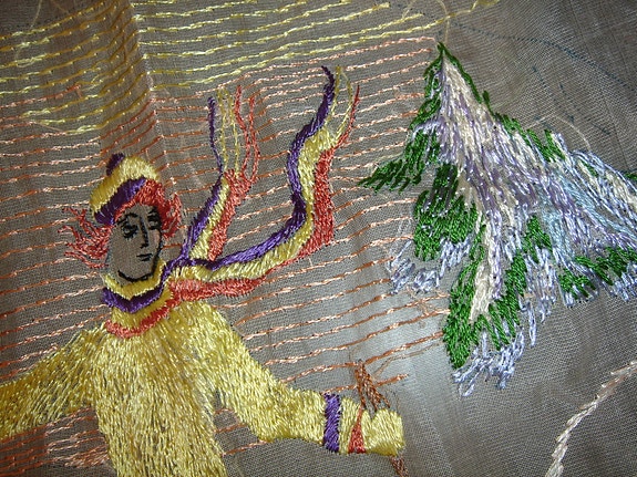 Viehättävä kirjontatyö Hiihtäjä