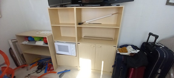 Kaksiosainen hyllykaappi.