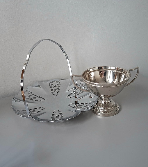 Sangallinen tarjoiluvati ja jalallinen kulho