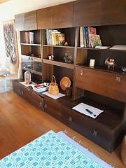 Ruskea iso olohuoneen kirjahylly