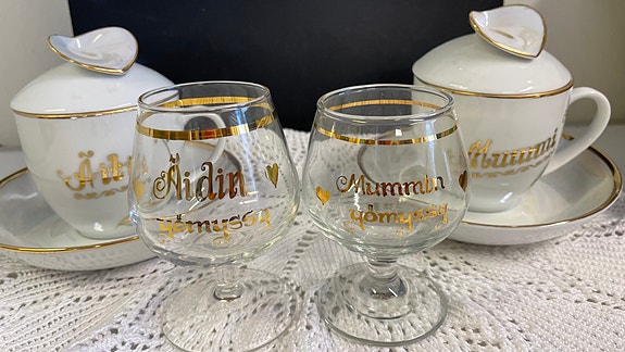 Äidille ja Mummille uudet käsinmaalatut kupit ja lasit