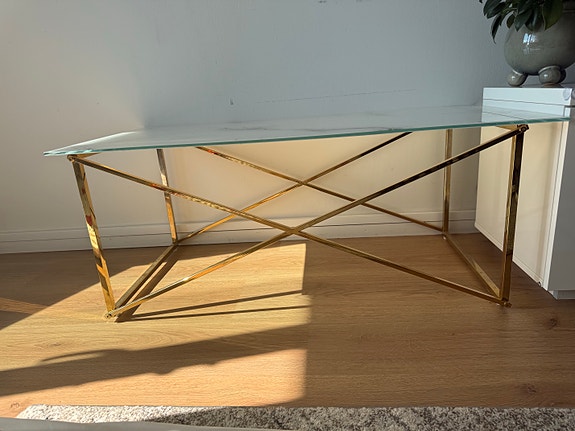 sohvapöytä lasikannella ja metallirungolla
