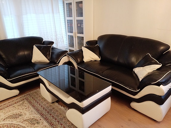 Tyylikäs musta-valkoinen nahkasohvasetti