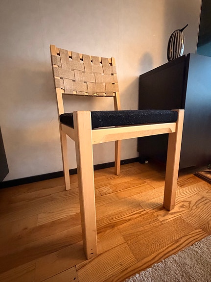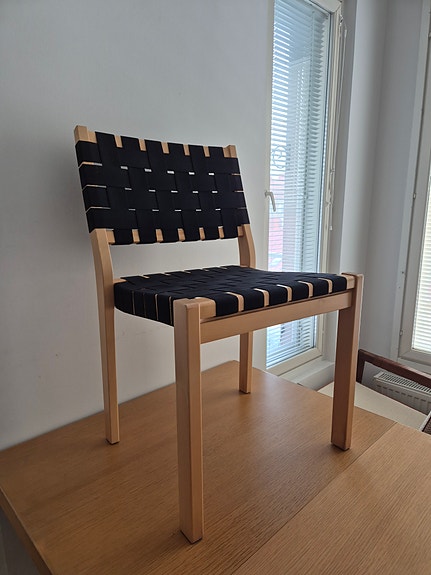 Artek tuoli puurunko luonnonvärinen vyöselkänoja musta istuin Alvar Aalto
