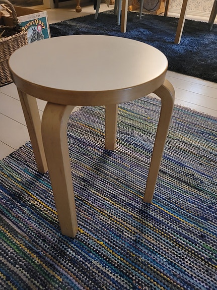 Artek Alvar Aalto jakkara pyöreä valkoinen koivu