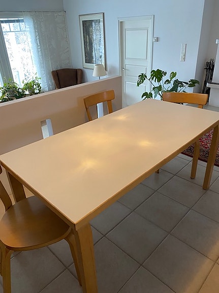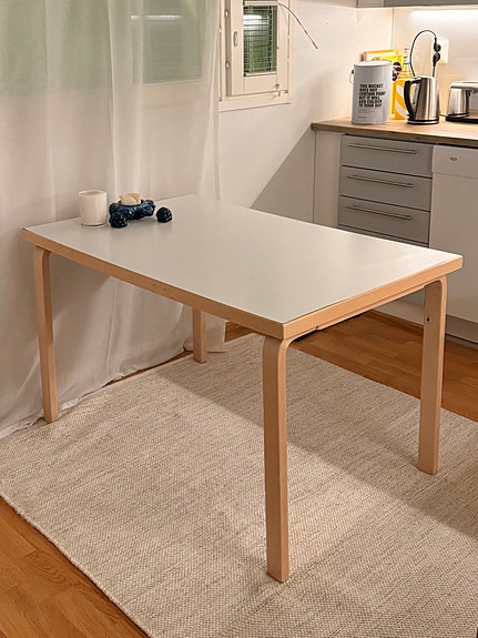 Artek Alvar Aalto 81B ruokapöytä valkoinen koivujaloin