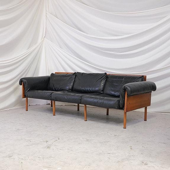 Yrjö Kukkapuro Ateljee 3-istuttava sohva, musta nahka ja ruusupuu, Haimi