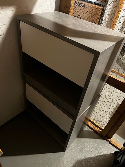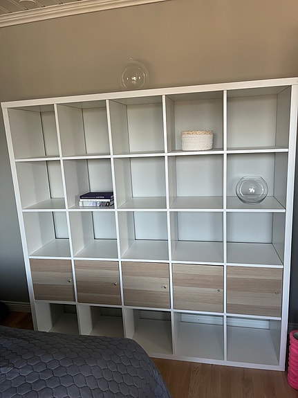 IKEA hyllykkö valkoinen puunsävyisin laatikoin