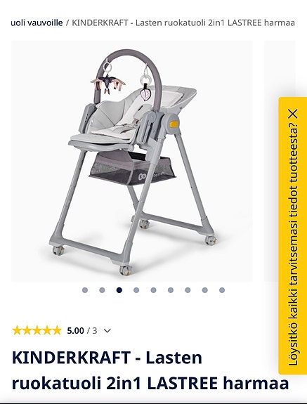 Löydä syöttötuoli, keinutuoli tai muu lasten tuoli edullisesti käytettynä! Torissa on 2 037 ilmoitusta, joissa myydään kaikenlaisia lasten tuoleja.