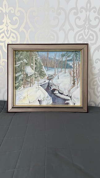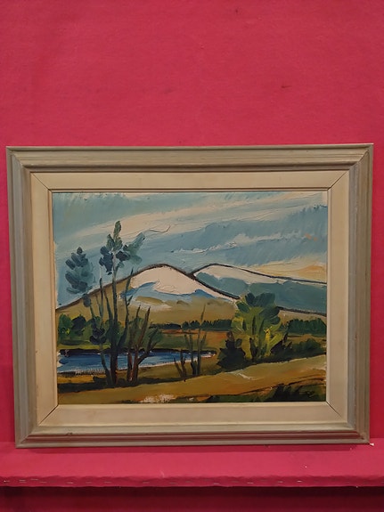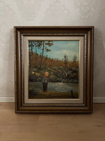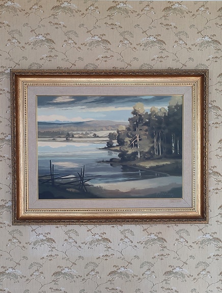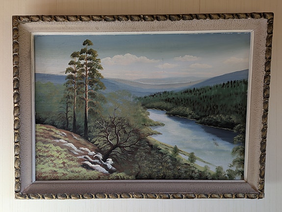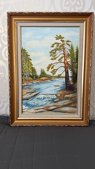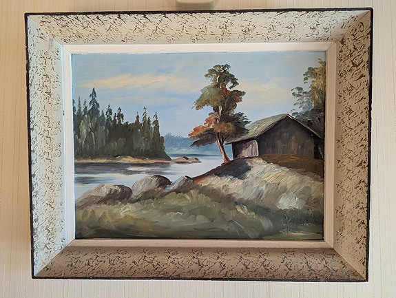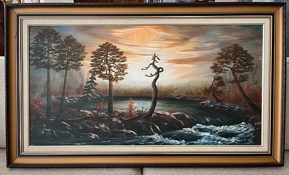 TARJOA! Maisemamaalaus järvimaisema, mäntykehys