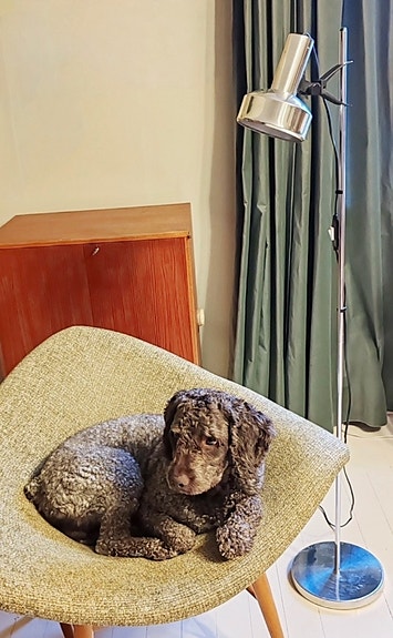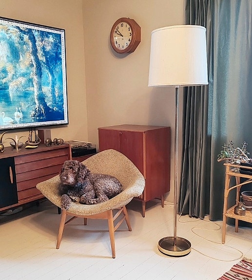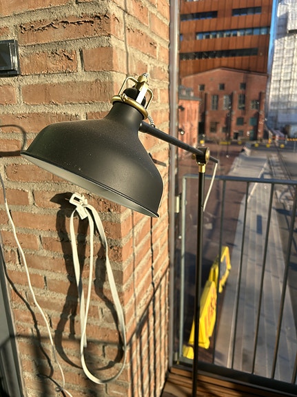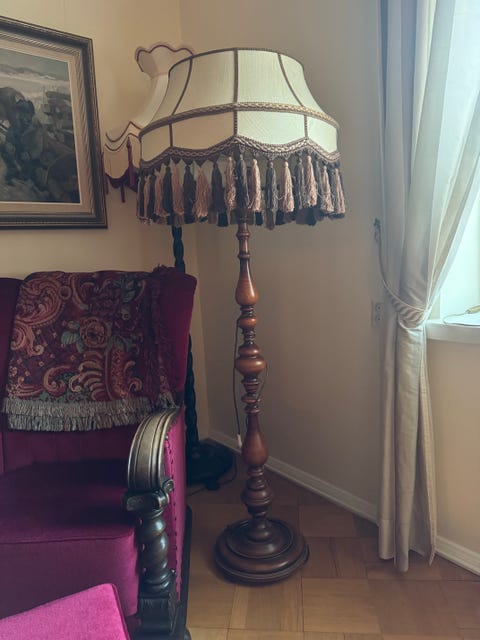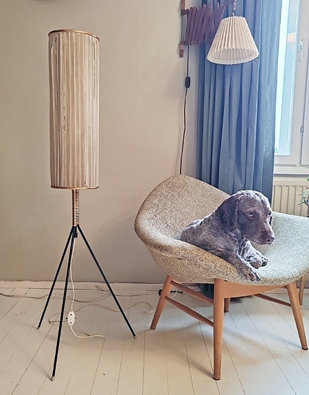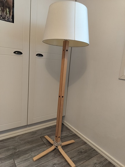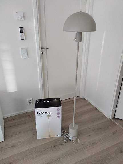 Lattialamppu, jossa tyylikäs vekkivarjostin (luo kivan tunnelman).