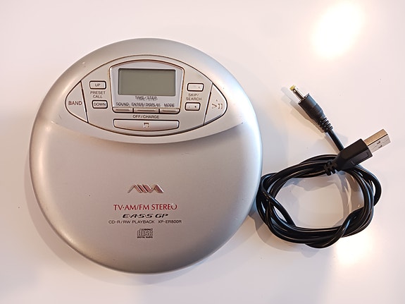 AIWA XP-ER800R kannettava CD-soitin FM-radiolla+latauskaapeli
