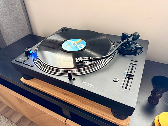 Technics SL-1210 GR2 levysoitin Clearaudio Virtuoso Wood äänirasialla