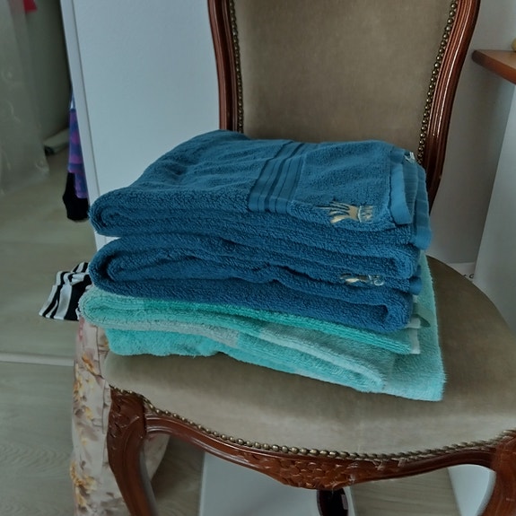 Pyyhkeet sinisen ja turkoosin sävyissä