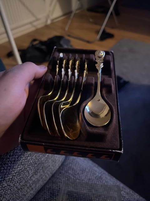 Upea pari: v.1919 hopeiset teelusikat