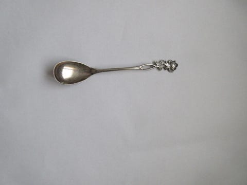 Hopeinen ruusupäinen suolalusikka