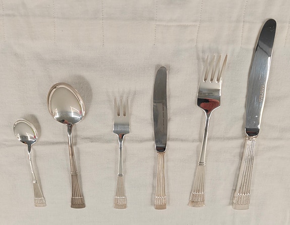 Jos hankit aterimia ja pöytähopeita käytettynä, muistathan että niitä kannattaa kiillottaa säännöllisesti. Netistä löydät runsaasti vinkkejä esimerkiksi hopean puhdistukseen. Toki vanhassa esineessä saa monen mielestä myös näkyä jonkin verran ajan patinaa. Myös oikea säilyttäminen auttaa pitämään vanhat hopeat kiiltävinä: pöytähopeat kannattaa säilyttää joko alkuperäisissä laatikoissa tai esimerkiksi puuvilla- tai minigrip-pusseissa, mieluiten valolta suojattuna.
