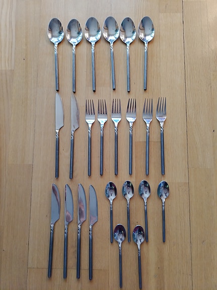 Hopeinen ruokailuvälinesarja