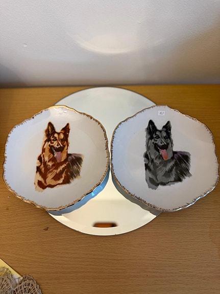 Seinälautaset saksanpaimenkoira-aiheella keramiikkaa