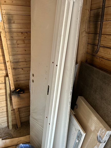 Kolme lähes käyttämätöntä valkoista Skaala-ulko-ovea karmeineen
