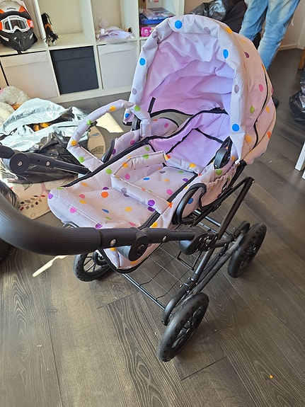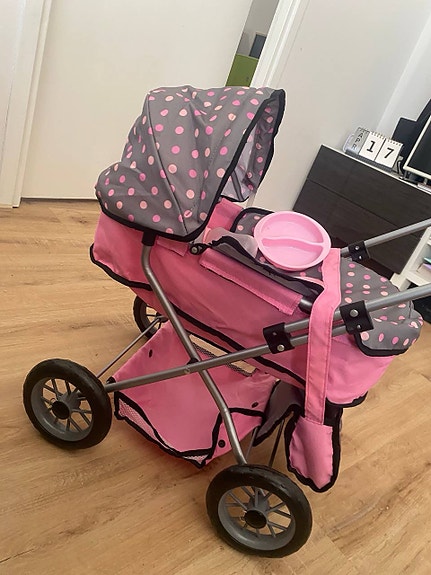 BRIO nukenvaunut vaaleanpunainen pilkullinen kangas