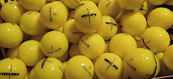 Keltaisia Taylormade Distance+ golfpalloja