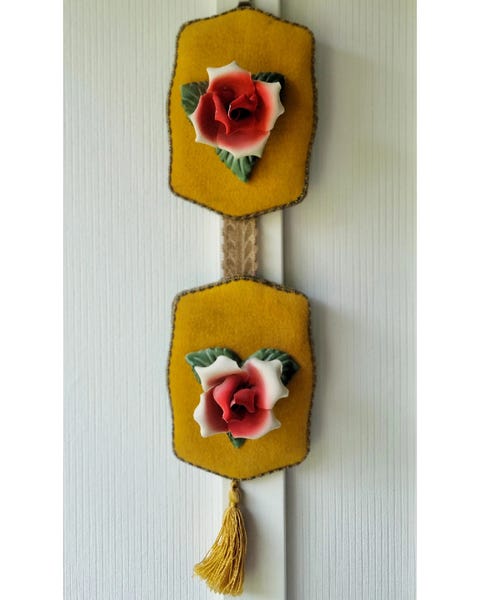 Vintage Sametti Taulu jossa Keraamiset Ruusut