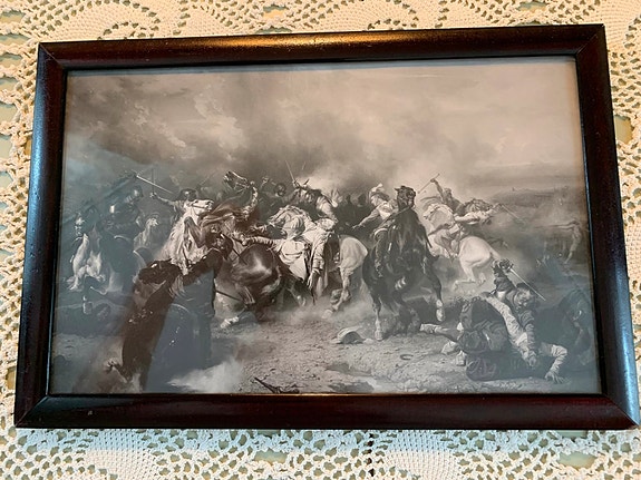 Vintage printti (?) Kuningas Gustav 2 kuolemasta