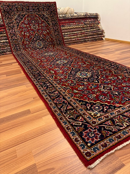 Upea käsinsolmittu Persialainen Keshan matto 310*108