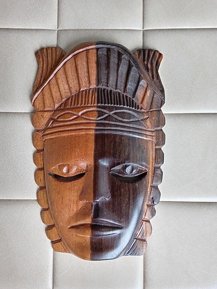 Puinen kasvo veistos seinälle