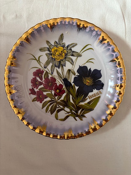 Iittala lautanen kukka- ja lintuaiheinen valkoinen/kulta