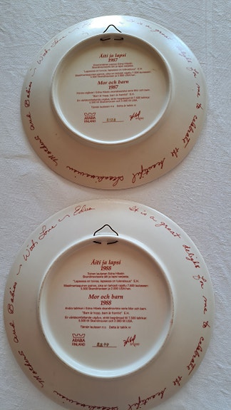 Arabia koriste-/seinälautaset äiti ja lapsi kuvituksella