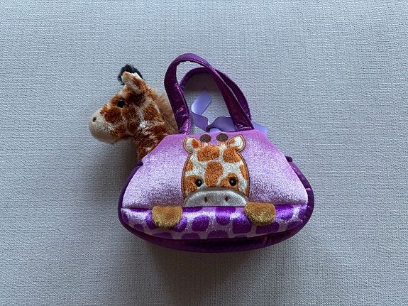 Kirahvi pehmolelu laukussa