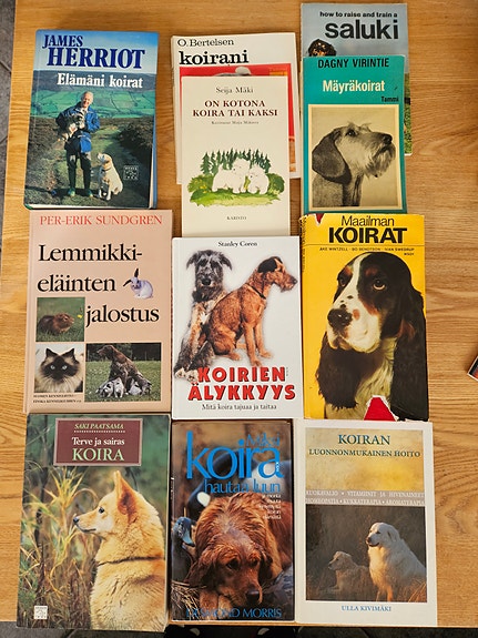 Sekalaiset koira-aiheiset kirjat koirankasvatus ja koiranhoito