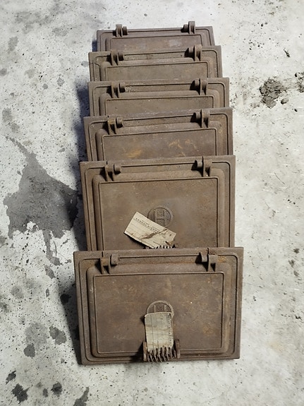 Takkatulen luukku- ja tuhka-astiaosat, valurautaa