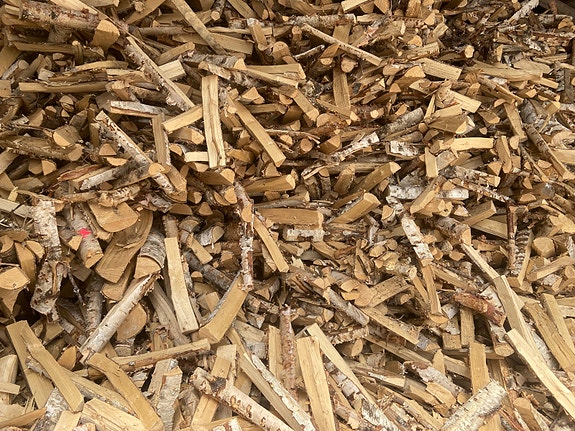 Kuivaa pienestä puusta tehtyä koivuklapia toimitettuna.