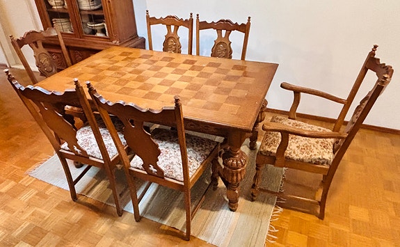 Uusbarokkinen ruokailuryhmä tammea