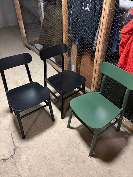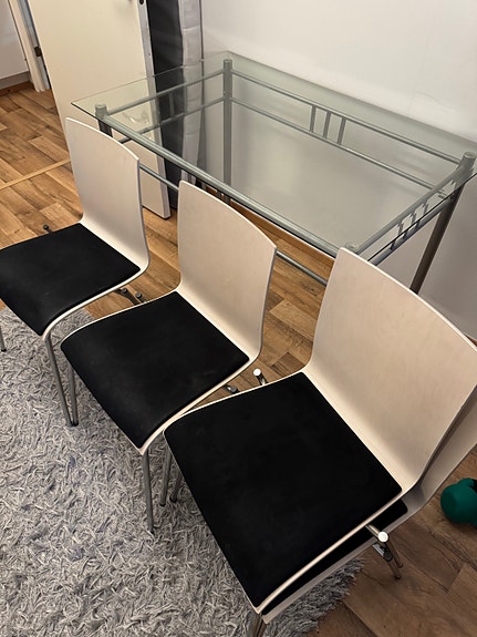 Ikea ruokapöytä + kolme tuolia (2 musta, 1 vihreä)
