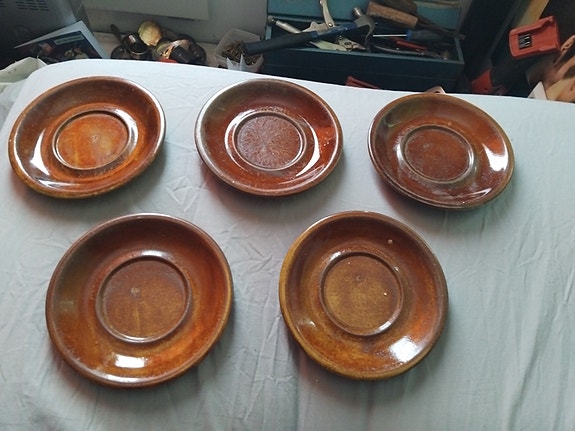 ruskeita kahvikuppilautasia
