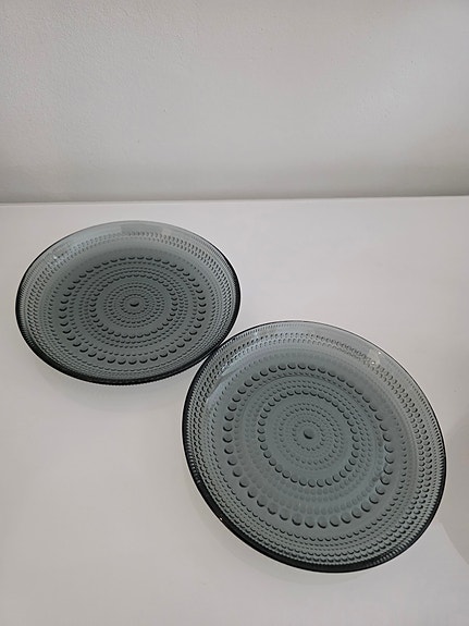 2 kpl Iittala Kastehelmi lautanen 17cm lasi harmaa