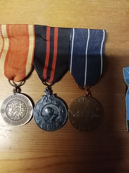 Sotamuistomitaleja ja 1939–44 nauhalla varustettu muistomitali