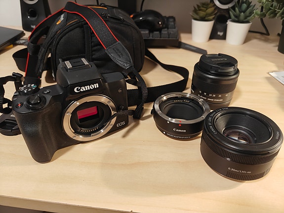 Canon EOS M50 (Mark I) with lenses and adapter