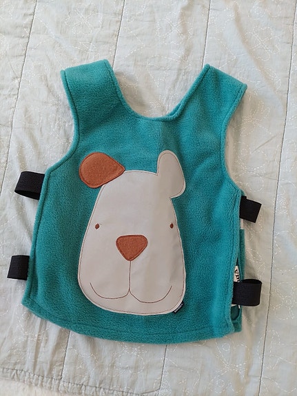 Vinkee lasten heijastinliivi S turkoosi fleece koirakuvio