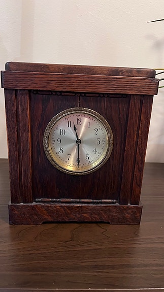 Antiikkinen puinen pöytäkello säästölippaalla