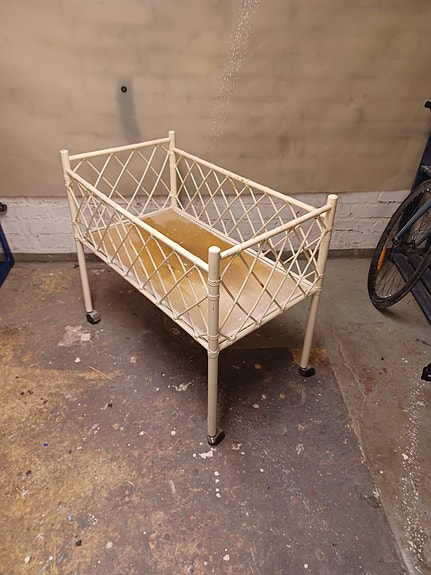 Vanha rottinkinen vauvan pinnasänky