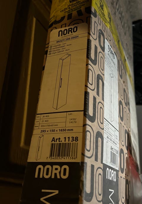 Noro korkea musta(kiiltävä) kaappi 295(l)x150(s)x1650(k)mm