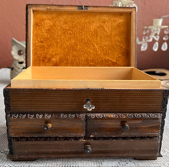 Kaunis, puinen korulipas 21,5x 13x 12.5 cm