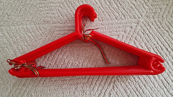 Valkoinen vaatekaappi, henkaritangolla
